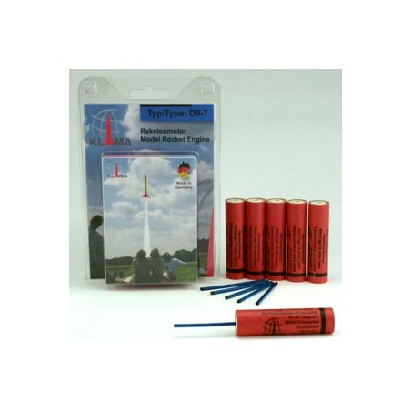 Raketový motor D9-7 pro raketové modely německé společnosti Raketenmodellbau Klima GmbH, která se specializuje na výrobu raketových motorů a raket.