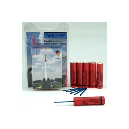 Raketový motor D9-P pro raketové modely německé společnosti Raketenmodellbau Klima GmbH, která se specializuje na výrobu raketových motorů a raket.