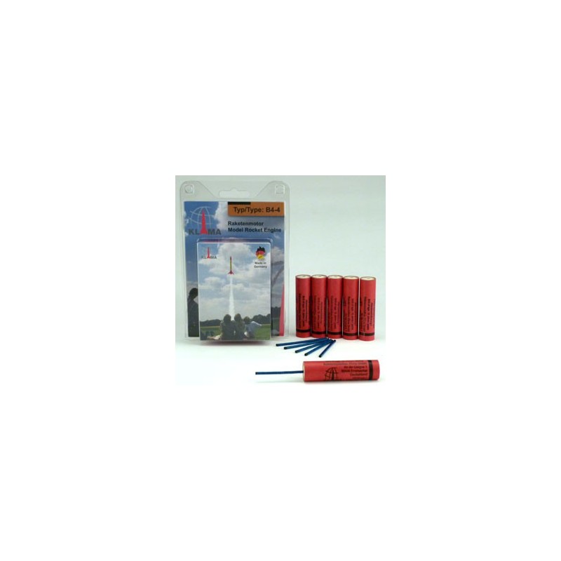 Raketový motor B4-4 pro raketové modely německé společnosti Raketenmodellbau Klima GmbH, která se specializuje na výrobu raketových motorů a raket.