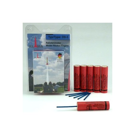 Raketový motor D9-3 pro raketové modely německé společnosti Raketenmodellbau Klima GmbH, která se specializuje na výrobu raketových motorů a raket.
