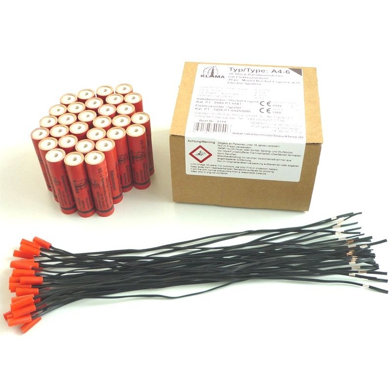Raketový motor A6-4 pro raketové modely německé společnosti Raketenmodellbau Klima GmbH, která se specializuje na výrobu raketových motorů a raket.