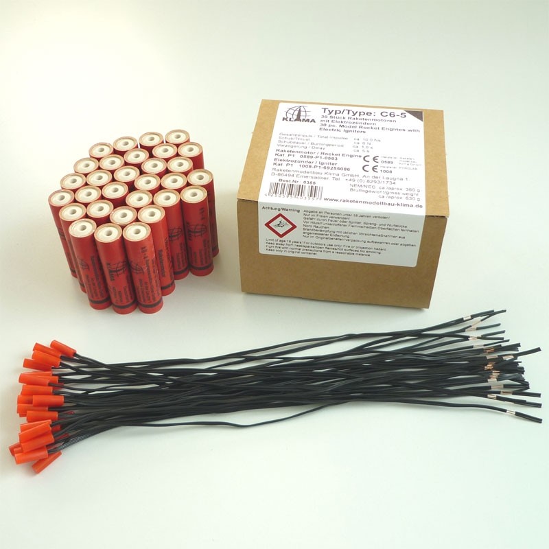 Raketový motor C6-5 pro raketové modely německé společnosti Klima se specializací na výrobu raketových motorů a raket.