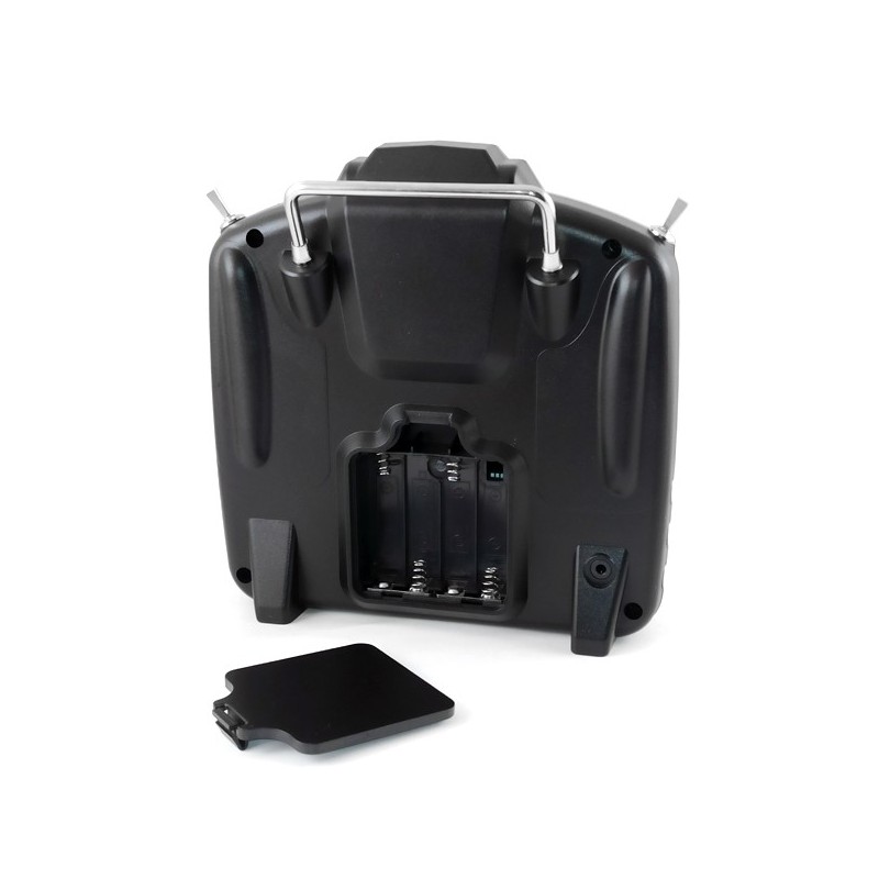 Vysílač má 6 proporcionálních funkcí (tyčky + 2 potenciometry) plus 4 přídavné přepínače (3 dvoupolohové a 1 třípolohový).