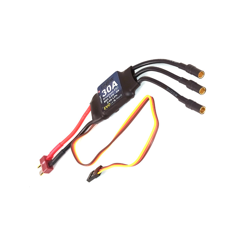 Univerzální regulátor Redox EVO 30A pro střídavé motory určený pro použití v modelech letadel a vrtulníků.