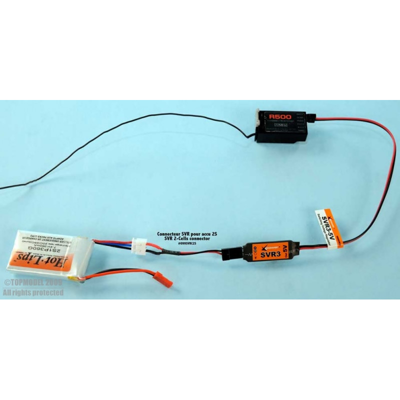 Zvláštností regulátoru XPower SVR je, že jej lze použít s 2S, 3S a 4S LiPo balíčky pomocí volitelných adaptérů s průchodkami. To umožňuje napájet přijímač, serva nebo jiná zařízení z pohonné jednotky modelu.