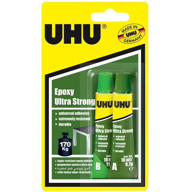UHU Epoxy Ultra Strong 170kg je dvousložkové epoxidové lepidlo určené pro obzvláště odolné spoje. Je ideální pro lepení materiálů, jako je kov, sklo, porcelán, keramika, dřevo, mramor, kámen, beton, plasty vyztužené skleněnými vlákny, PVC, guma a pěna. Lepidlo není vhodné pro lepení velkých skleněných ploch. Spoj je odolný proti nárazu, stárnutí a vodě a doba použití závisí na množství použitého lepidla a teplotě (přibližně 2 hodiny při pokojové teplotě).
