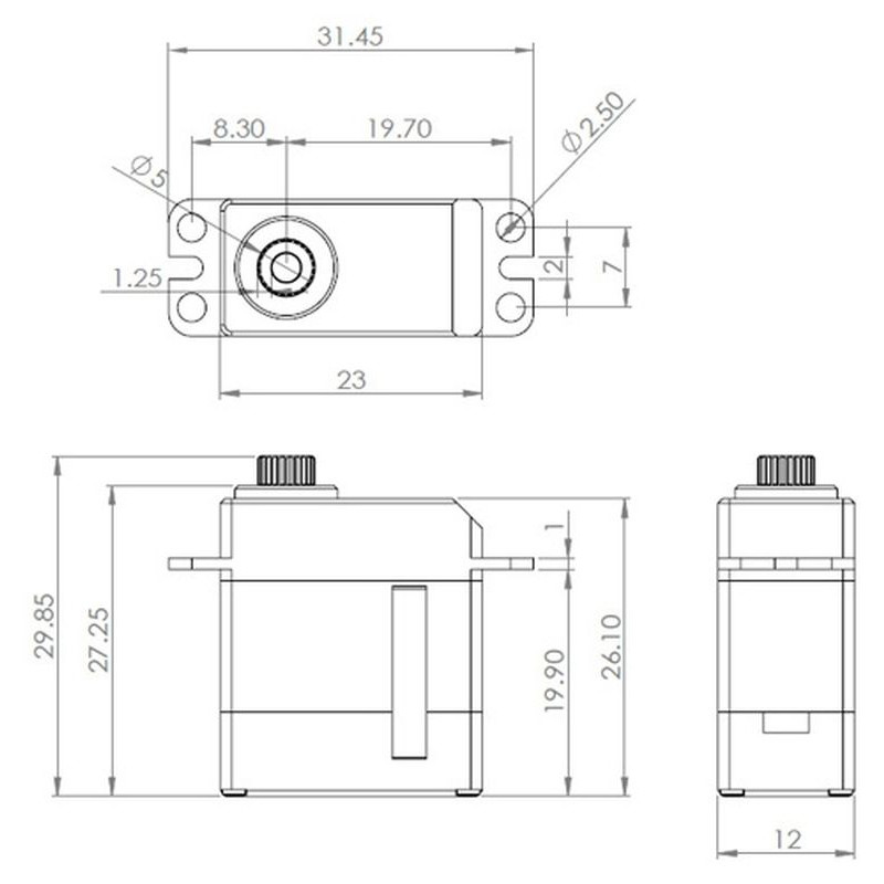 Výkonný a velmi rychlý programovatelný digitální mikromotor s kovovými převody a výstupní hřídelí uloženou na dvou kuličkových ložiscích. Vhodný pro malé vrtulníky a letadla.