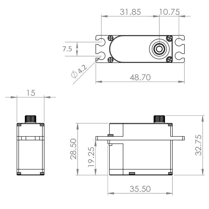 Velmi rychlý úzkopásmový (760 µs) digitální miniservo převodník s kovovými převody a výstupní hřídelí uloženou na dvou kuličkových ložiscích. Ideální pro trimovací rotory vrtulníků velikosti 500, kompatibilní s většinou gyroskopů 760 µs a zařízení flybarless. Aby bylo zajištěno ideální chlazení i při velkém zatížení, je servo uloženo v hliníkovém pouzdře. Servo není programovatelné.