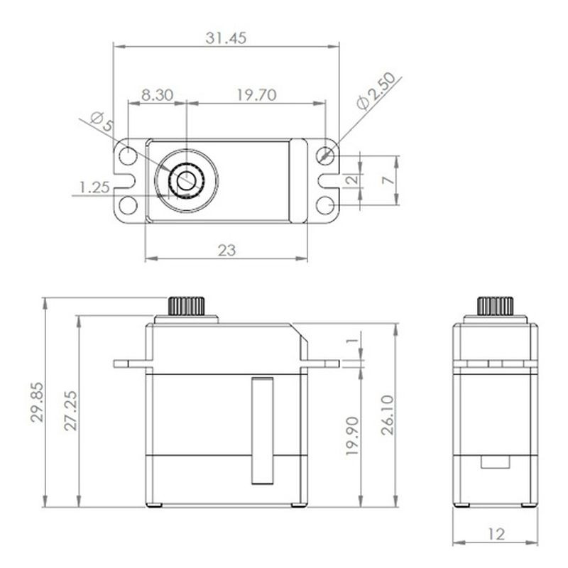 Velmi rychlé programovatelné digitální mikroservo s kovovými převody a výstupní hřídelí uloženou na dvou kuličkových ložiscích. Díky vysoce přesným předepnutým převodům s minimální vůlí je vhodné zejména pro ovládání přistávacích ploch, ale také křidélek a klapek u kluzáků (F3B, F3F, F3J, F5J atd.) a motorových modelů nebo směrových kormidel u miniaturních vrtulníků. Aby bylo zajištěno vynikající chlazení i při velkém zatížení, je servo uloženo v hliníkové skříni se standardními nožičkami.