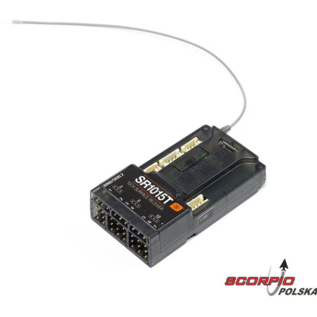 RC přijímač Spektrum SR1015T s 10 kanály a modulací DSMR+/DSMR pro RC auta a lodě. deset plně proporcionálních kanálů poskytuje větší flexibilitu a všestrannost ovládání pomocných systémů, jako jsou navijáky, světla atd. Vyznačuje se vynikajícím dosahem a odezvou, zejména tam, kde v pásmu 2,4 GHz pracuje více systémů. Nabízí plné telemetrické pokrytí. Podporuje technologii Spektrum Smart prostřednictvím protokolu SRXL2 - komunikuje s elektronickými regulátory Spektrum Smart FIRMA a přenáší telemetrii bez senzorů. Obsahuje porty pro připojení telemetrických čidel - VOLT pro měření napětí, RPM pro měření otáček, TEMP pro měření teploty, dále vstup XBUS a konektor Micro USB. Pro snadné párování je na horní straně umístěno párovací tlačítko.
