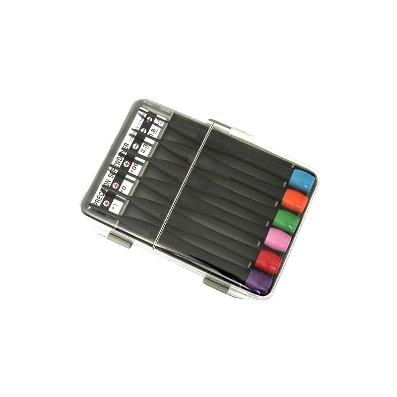 Sada přesných šroubováků, ideální pro aplikace v přesné elektronice, počítačích, GSM telefonech, v jakékoli dílně s elektronikou a samozřejmě v modelování. Šroubováky z kalené, popouštěné oceli. Měkká rukojeť a otočná koncová část v estetickém uzavřeném obalu.