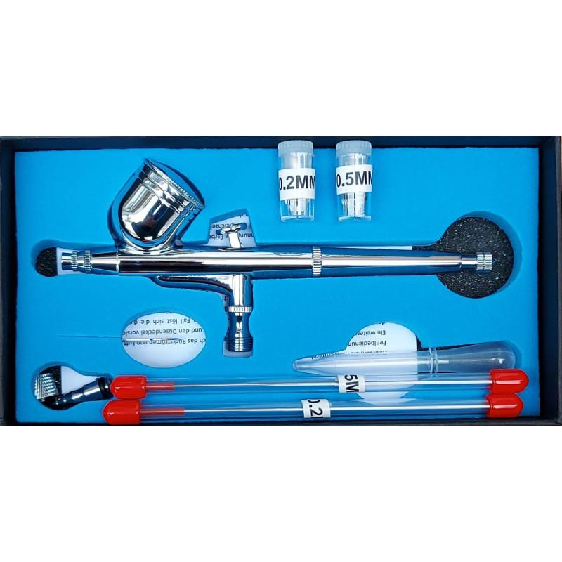 Airbrush TG-130 s tryskami a jehlami: 0,2/0,3/0,5 mm od společnosti Magma ( bez loga ).