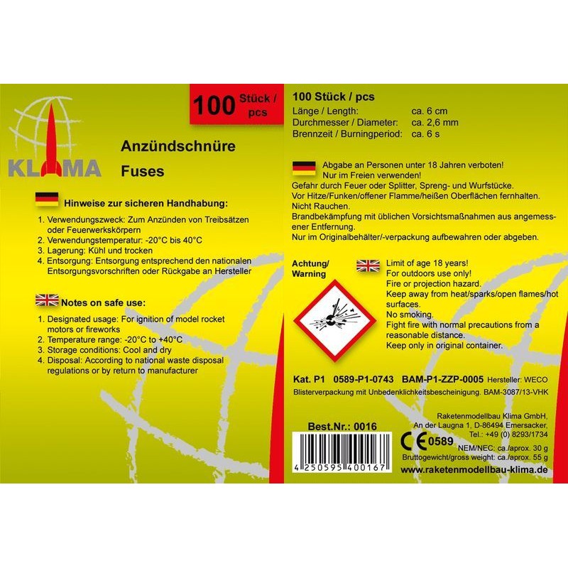 Pojistka německé firmy Klima GmbH pro „střelbu“ raketových motorů.