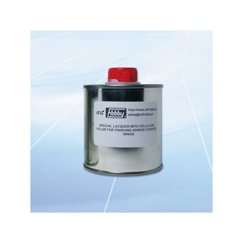 Speciální lak s celulózovým plnivem pro potah dýhových ploch křídel a ocasních ploch.
