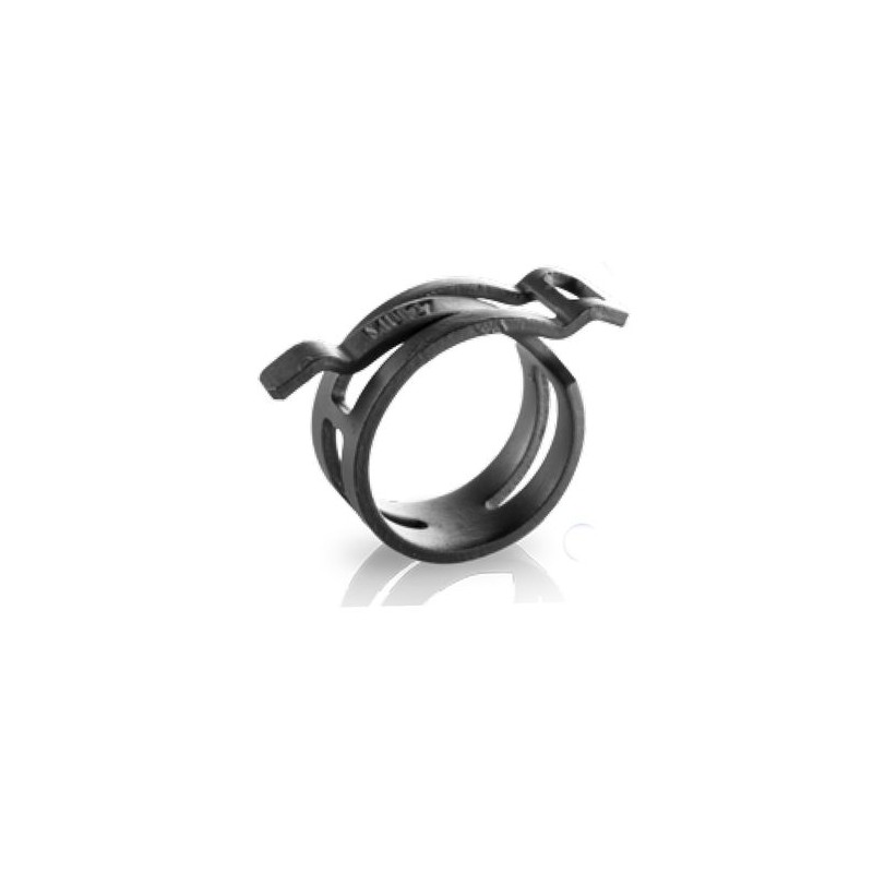 A steel self-tightening clamp made of a very hard spring tape.