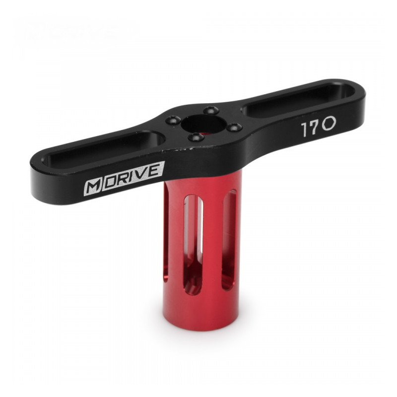 High quality 17mm wheel nut wrench made of red/black anodized aluminum. Ideal tool for removing and tightening wheel nuts of 1/8 Buggy, 1/8 Truggy or 1/8 GT. Also fits Traxxas E-Revo, Summit, T-Maxx 3.3, Revo 3.3 & other brands of larger monster trucks with 17mm wheel nuts.