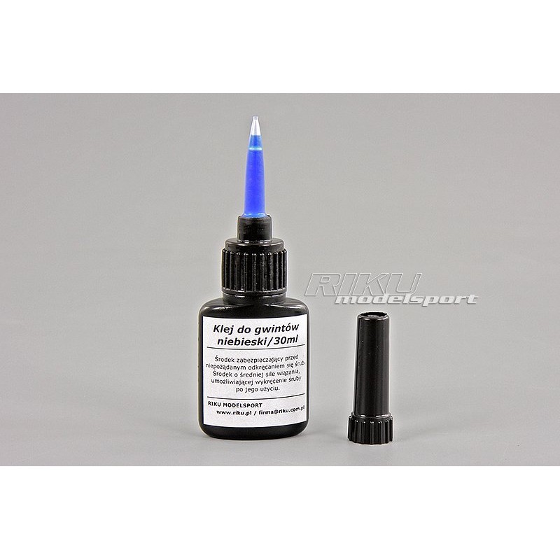 Thread glue - medium (blue) - 30ml. Application: Threaded connections of screws subject to vibration and breakaway torque. Adhesive with medium bond strength. Allows you to unscrew the screw.