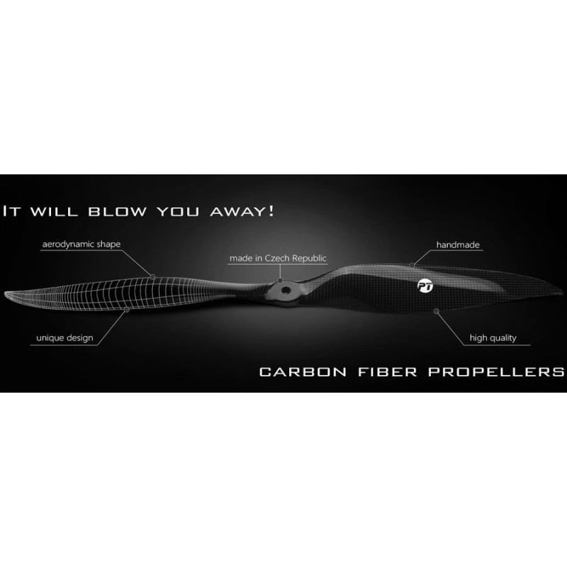 PTmodel carbon propellers are distinguished by high performance, stiffness and low drag. All propellers delivered from the factory are balanced, made of certified carbon fiber and epoxy resins.