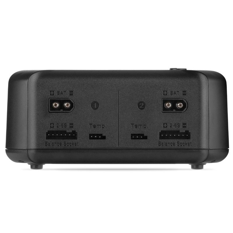 The charger is equipped with XT60 output sockets in both channels and universal sockets for JST-XH service connectors, which allows direct connection of battery cables and JST-XH service connectors from 2-6S kits - for kits with XT60 and JST-XH connectors, you can completely dispense with charging cables and adapters. Standard Sky RC adapters can be used to connect service connectors from other systems.