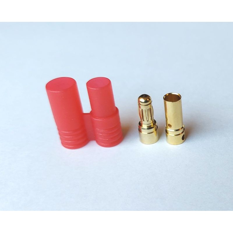 A set of gold-plated "banana" connectors (plug + socket) 3.5 mm with a housing for self-earning. Connectors used in the regulator-battery connections. The special construction of the 3.5 mm gold connector from the set allows you to work on high currents and protects the user against reverse insertion of the plug.