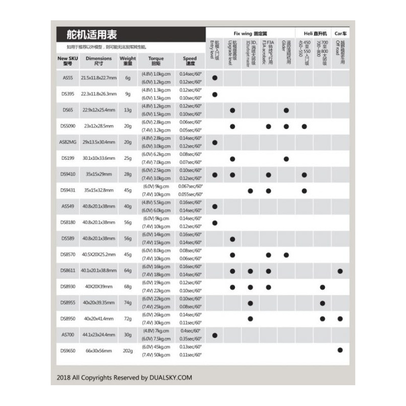 - speed: 0.08sec/60° (6.0V), 0.06sec/60° (7.4V)