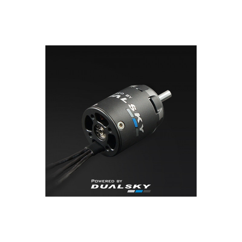 The XM2532EG is Dualsky's line of 14-field 25mm diameter electric motors, designed for small glider models with narrow fuselages, such as the F5J, with a 25-32mm cap-trimmed bow. Strongly openwork front of the motor and rotor with a fan using a "turbo" cap provide excellent cooling. The lack of a rotating rotor and the cables leading out of the rear of the motor allow easy and safe installation in a tight fuselage without the risk of cutting the wires. The motor features a 4mm diameter hollow shaft. The motor uses heavy-duty, high-speed NMB bearings.