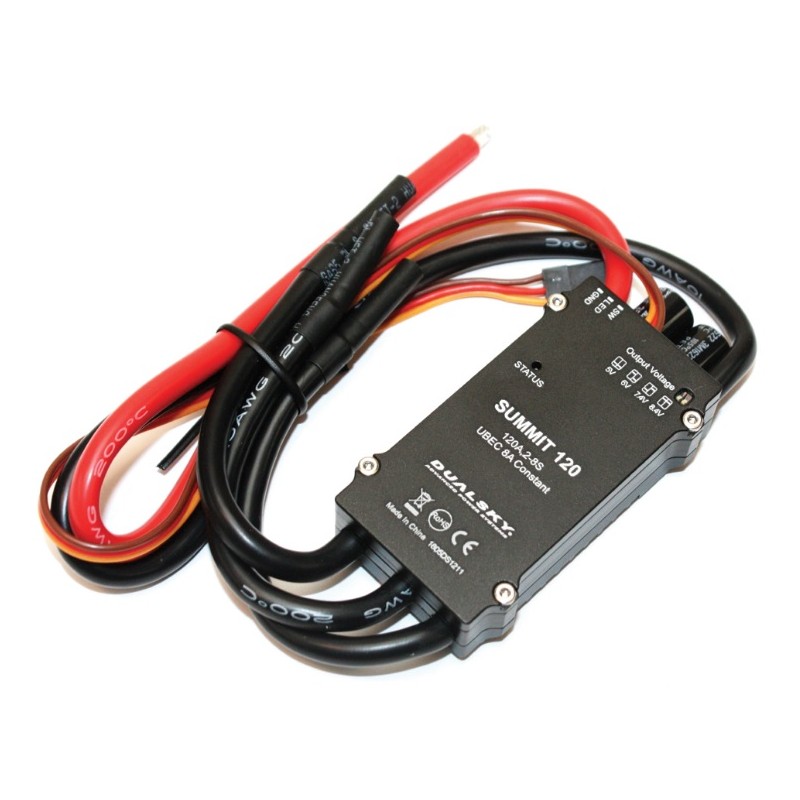 Top-class speed controller 120A with an integrated powerful 8A BEC with adjustable output voltage in the range of 5-8.4V. Dedicated to 125E 3D / freestyle and F3A class models as well as UAV models.