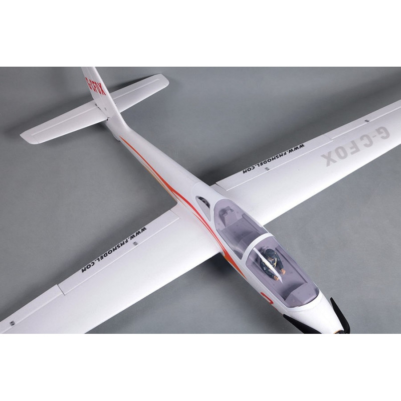 ARF version semi-makeup (99% assembled) of the Polish Fox aerobatic glider. The model is made entirely of impact-resistant (almost indestructible) EPP material. The wing, with a high profile with cut-out ailerons connected in the fuselage by a laminate tube. In the fuselage is mounted the main wheel and tail wheel with a rubber tire to cushion the impact when landing, a cabin of embossed Plexiglas, in the cockpit a pilot figure. The whole model is painted and glued with registration marks. The glider is suitable for intermediate RC pilots due to its excellent flying properties.