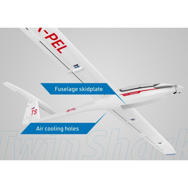 You can also use a six-channel computerized RC kit without special functions to control the model in emergency situations - in the basic version, the ailerons and flaps are connected to only one channel via Y cables. The ideal, of course, is to use at least a seven-channel RC computer set that allows independent control of ailerons and flaps by two servos and their mixing as a butterfly brake (both ailerons swing up and both flaps swing down). In this case, it is necessary to replace the Y-cable of the ailerons and flaps in the fuselage with four single (15-30 cm) extensions. Of course, the manual includes a detailed table with proven default rudder deflection settings (including mixes) to easily prepare the Twin Shark for flight,