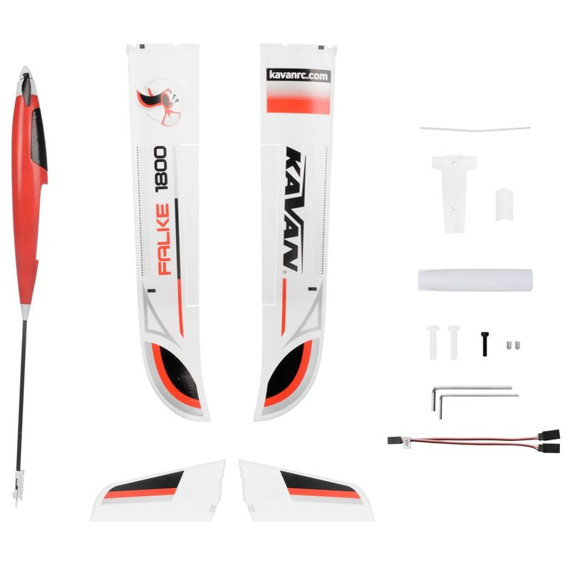 The front part of the model's fuselage is made of high-strength EPO (extruded polyolefin) foam; the tail boom is made of carbon tube. A C2714-1450 AC electric motor with a 7x6" folding propeller and a KAVAN R-20B regulator with a BEC power stabilizer are mounted on the bow. The cabin cover is removable, attached to the front with a pin, az the rear with a magnet. At the bow you will find enough space for the propulsion battery and receiver. Rudder and altitude servos are stored in the fuselage under the wing, the rudders are controlled by cables.