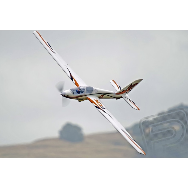ARF version semi-makeup (99% assembled) of the Polish Fox aerobatic glider. The model is made entirely of impact-resistant EPP material. The wing, with a high profile with cut-out ailerons connected in the fuselage by a laminate tube. In the fuselage is mounted the main wheel and tail wheel with a rubber tire to cushion the impact when landing, a cabin of embossed Plexiglas, in the cockpit a pilot figure. The whole model is painted and glued with registration marks. The glider is suitable for intermediate RC pilots due to its excellent flying properties.