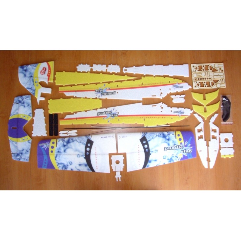 Puddle Star is an extremely aerobatic seaplane model built entirely of EPP. It will allow you to enjoy in the water, in the snow and in the air. The oversized controls and amazing power-to-weight ratio make the plane extremely agile and aerobatic. On the other hand, with limited casts, this could be your first seaplane with line and predictable handling. Star and landings on the water are easy and smooth thanks to throttle only control. If you add a mix of controls to it, i.e. rudder - differential and elevator - clapperons, you will turn this plane into something you haven't seen yet!