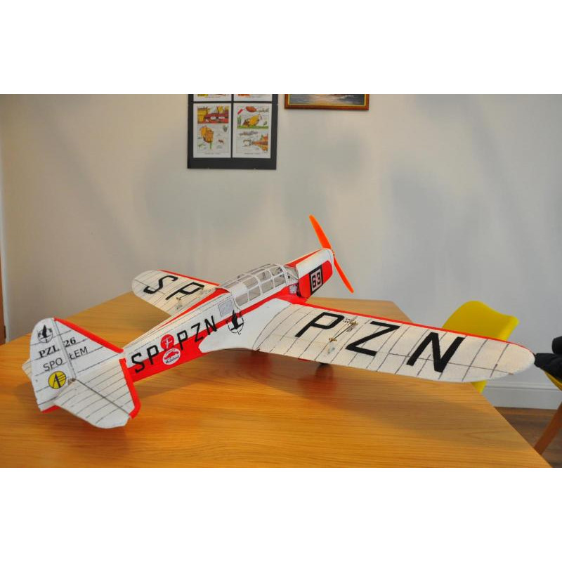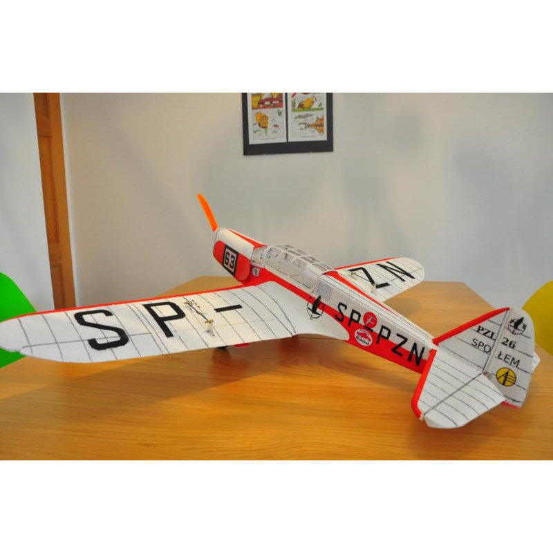 Model of the PZL 26 airplane made of EPP in the KIT version (for independent "machining" of parts, assembling and painting).