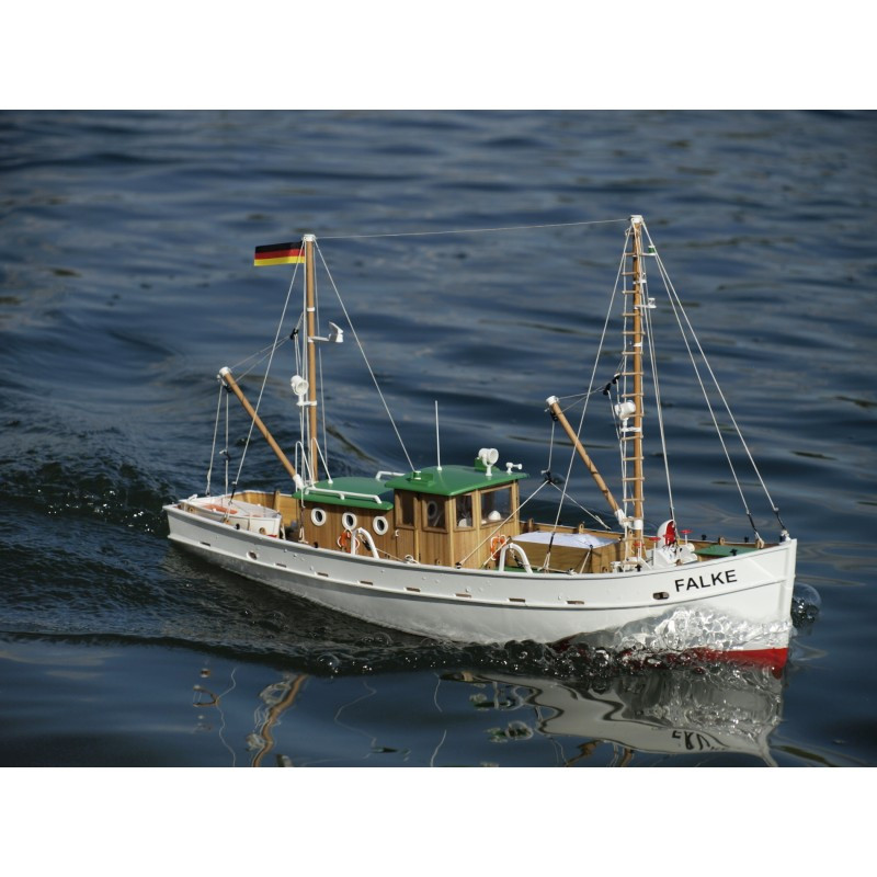 A new, thoroughly improved version of the popular 725mm long remote controlled fishing boat model ! The new Falke now offers a more sophisticated design and many model details. You can build it and sail it for fun, but you can just as well go racing mock-ups under NAVIGA rules of the F4A category (only swimming on the slalom course is judged) or F4B (construction and swimming are judged) - after all, designer and manufacturer Petr Vladyka with the Falke prototype took 5th place overall in the CR 2022 Championship series in the F4B category.