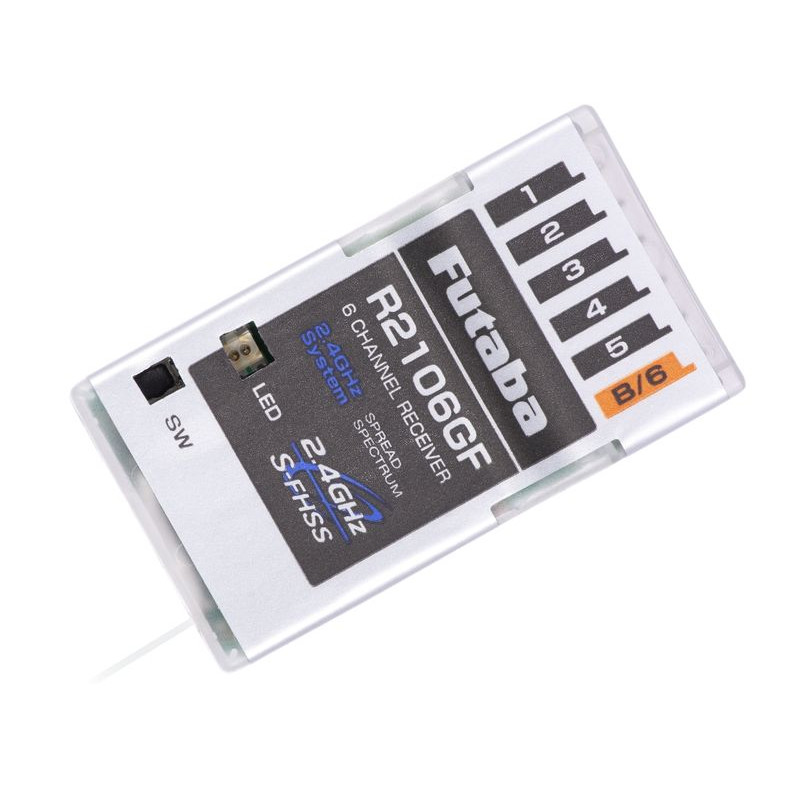 Small, lightweight, 6-channel receiver designed to work with Futaba 2.4GHz FHSS and S-FHSS transmitters. Not compatible with FASST transmitters.