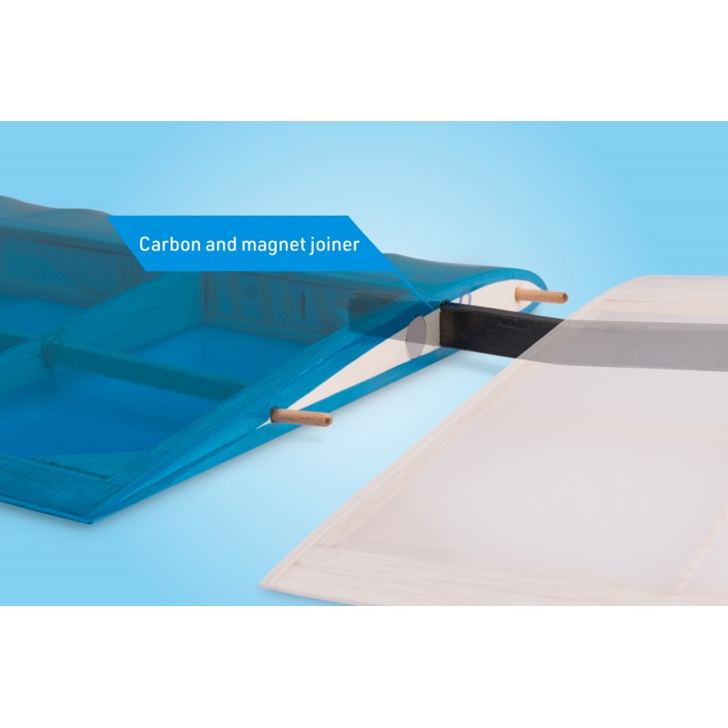 The kit includes CNC cut balsa and plywood elements, rigid balsa slats and boards, carbon tube tail beam, accessory kit, self-adhesive decal sheet, 1: 1 scale construction plan and instructions.