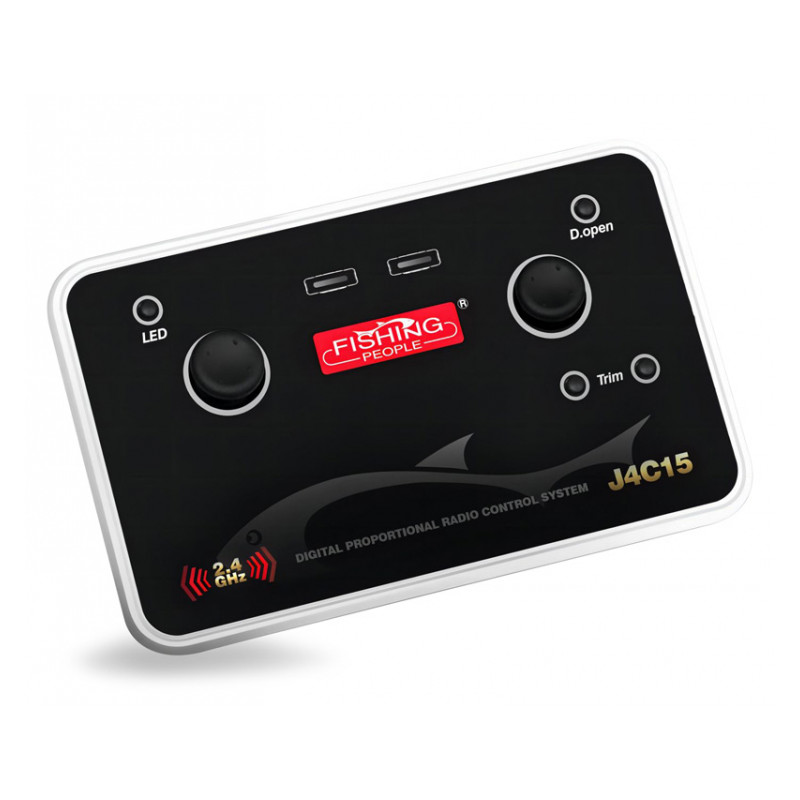 1x RC bait boat 1x USB charger 1x 4.8 V 5000 mAh rechargeable NiMH battery 1x 2.4 GHz joystick style radio control system