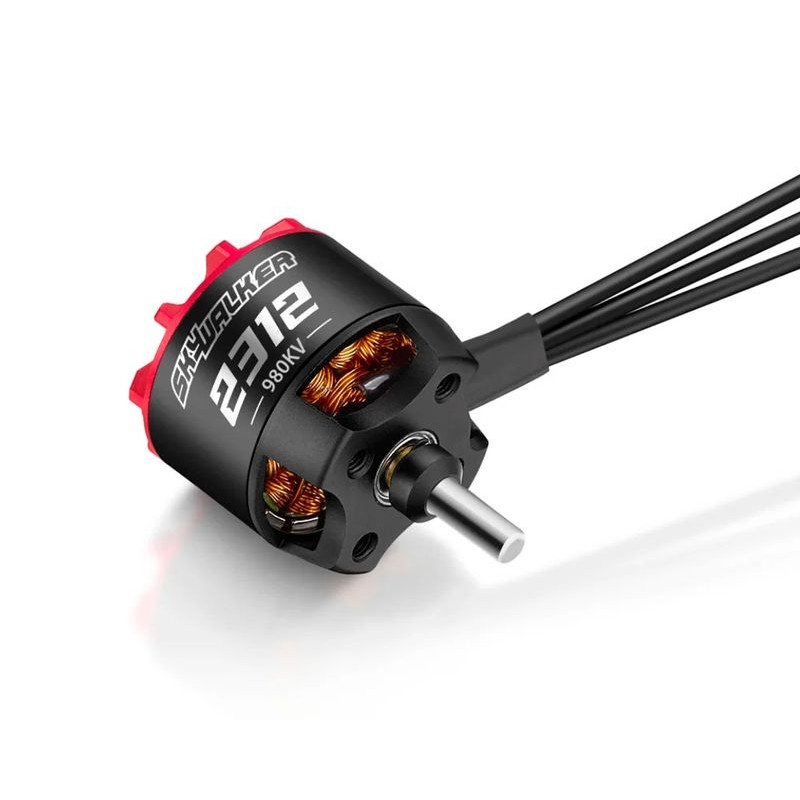 Hobbywing's SKYWALKER motors are high-performance, commutatorless ("brushless") fourteen-pole rotary ("outrunner") electric motors with excellent electrical characteristics, sophisticated design and superior manufacturing quality. Shafts made of hardened steel and high-quality bearings ensure a long service life, and the high-quality materials used for the stator and rotor also guarantee excellent performance at high efficiency. These are low-speed, high-torque motors that handle large-diameter propellers and operate without the need for gears.