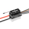 Top programmable microprocessor controller for AC motors without sensors ("brushless, sensorless") built using the capabilities of state-of-the-art semiconductor technology with excellent performance characteristics and extensive programming and setup capabilities. It is used to control the speed of AC electric motors in larger and giant model aircraft or helicopters when powered by LiPo/Li-ion/LiFe batteries. It is designed for the high load capacity and durability required in competitive and large models. For helicopters, it offers an advanced regulator function with a range of adjustable parameters for constant speed control. It features a high-performance pulsed BEC power stabilizer with adjustable output voltage to provide power to the receiver and servos from the propulsion battery.