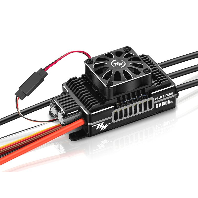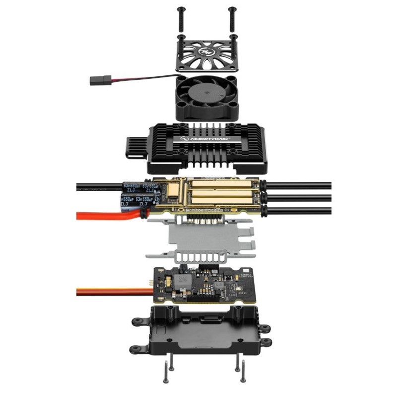 Top programmable microprocessor controller for AC motors without sensors ("brushless, sensorless") constructed using the capabilities of state-of-the-art semiconductor technology with excellent performance characteristics and extensive programming and setup capabilities. It is used to control the speed of AC electric motors in large model aircraft or helicopters powered by LiPo/Li-ion/LiFe batteries. It is designed for the high, long-lasting load-carrying capacity and durability required in high-performance models. For helicopters, it offers an advanced regulator function with a range of adjustable parameters for constant speed control. It features a high-performance pulsed BEC power stabilizer with adjustable output voltage to provide power to the receiver and servos from the propulsion battery. For easy adjustment of the controller, use Hobbywing's special multifunction LCD programmer or OTA programmer with Bluetooth, which are sold separately.