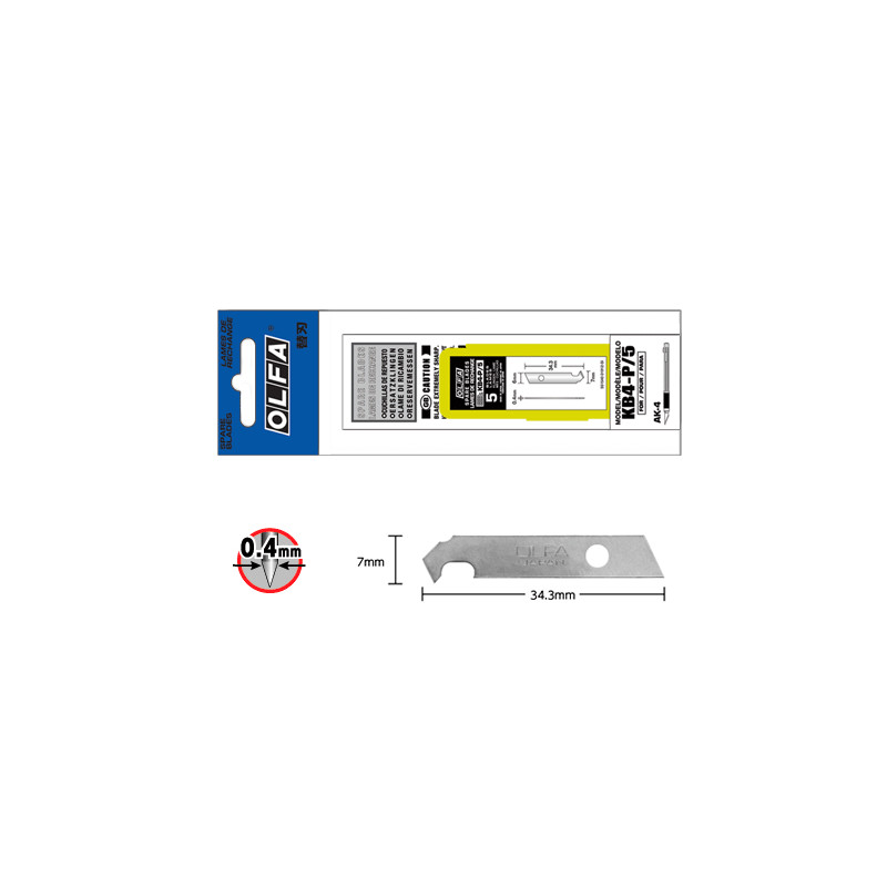 The package with the symbol KB4-P/5 contains 5 blades in a plastic box.