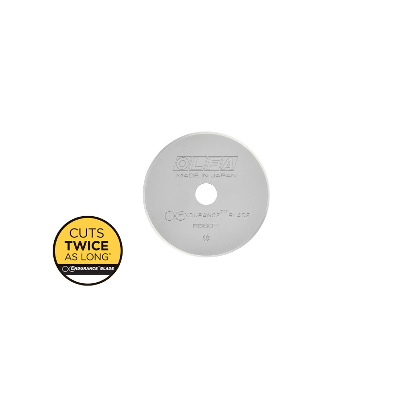 This 60mm diameter OLFA® Endurance rotary blade retains the necessary sharpness for cutting twice as long as the standard RB60 blade. This effect is achieved by expertly grinding a blade made of tungsten tool steel with a proprietary chemical composition. Extending the time between blade changes saves you time and money!