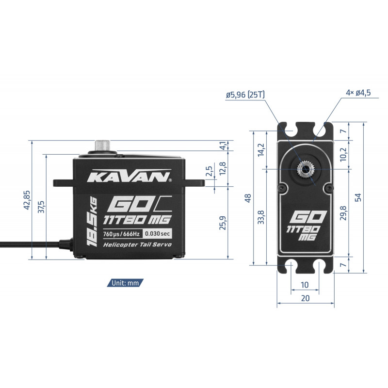 A powerful and very fast 79g standard narrow-band servo with AC (brushless) motor with titanium/steel gears and output shaft mounted on three ball bearings for use as a rotor-balancing servo in 500-800 RC helicopters. To ensure excellent cooling even under heavy load, the servo is housed in an aluminum case.