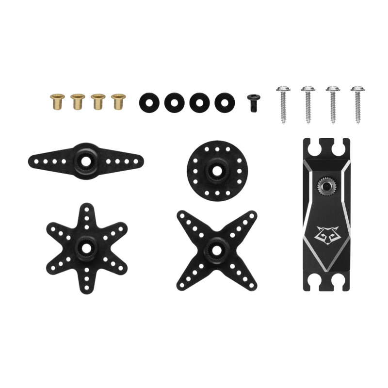 Programmable digital servo with titanium gears, non-dielectric motor and two ball bearings for use in models: airplanes, gliders, hotliners, etc. For excellent cooling even under heavy load, the servo is in an aluminum housing.