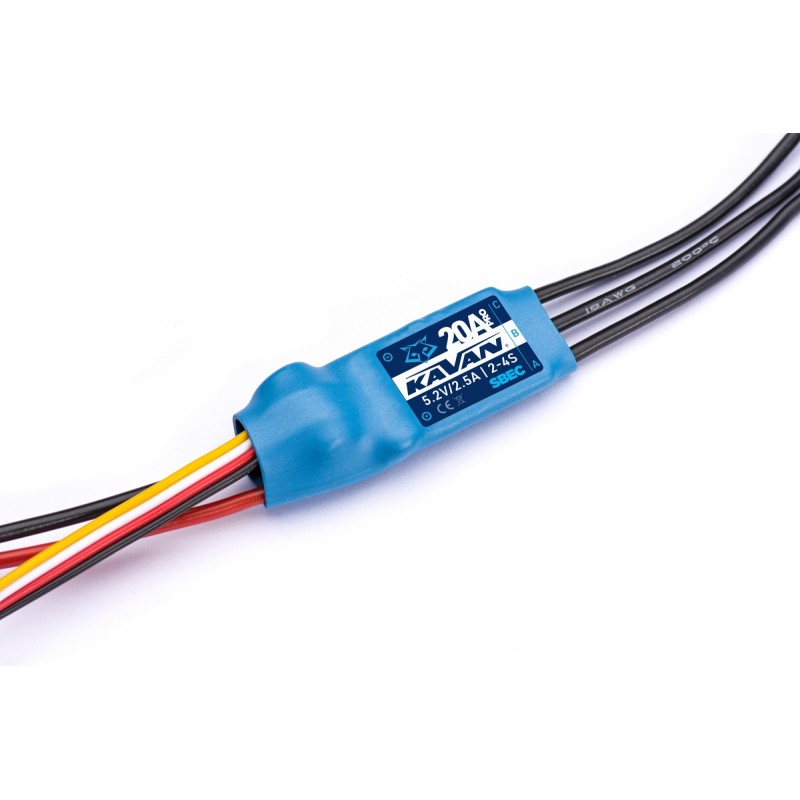 Programmable microprocessor controller for AC motors without sensors ("brushless, sensorless") for recreational and sports aircraft models powered by LiPo batteries. It uses advanced optimized control technology that greatly improves gas response and power stage control efficiency. The design of the controller takes into account the high long-term load capacity and durability that is required in models with more servos. The controllers are equipped with an efficient BEC switch-mode power supply stabilizer with a selectable output voltage supplying power to the receiver and servos from the drive battery