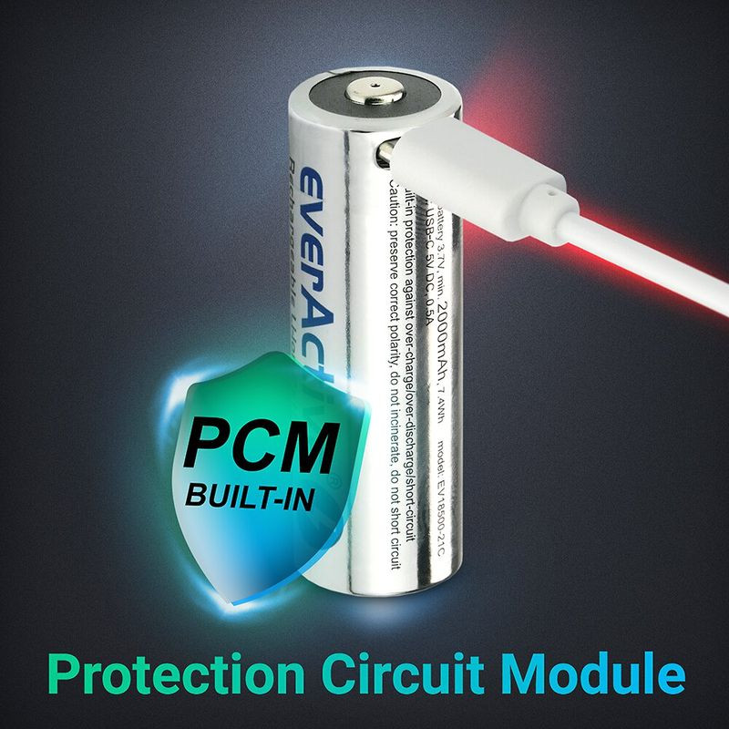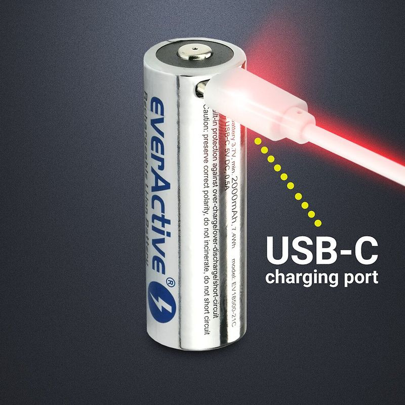 Innovative 18500 everActive battery made with Li-ion technology. USB-C with BOX protection