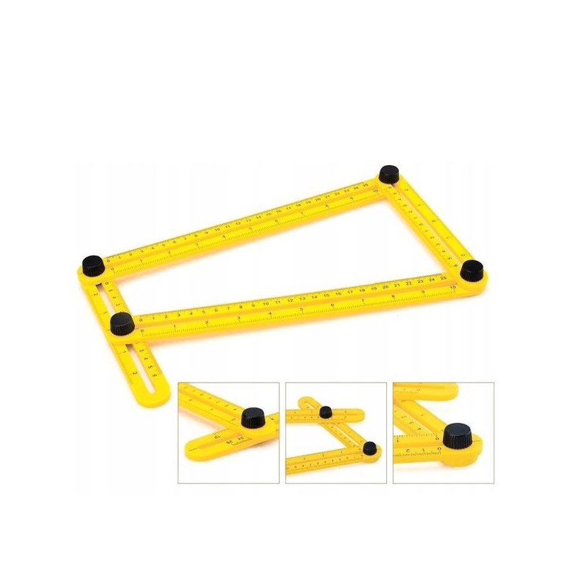 The multifunctional protractor is used to measure elements of various shapes. The device has four screws to tighten, which will allow you to easily determine the shape you need and transfer it to any place.