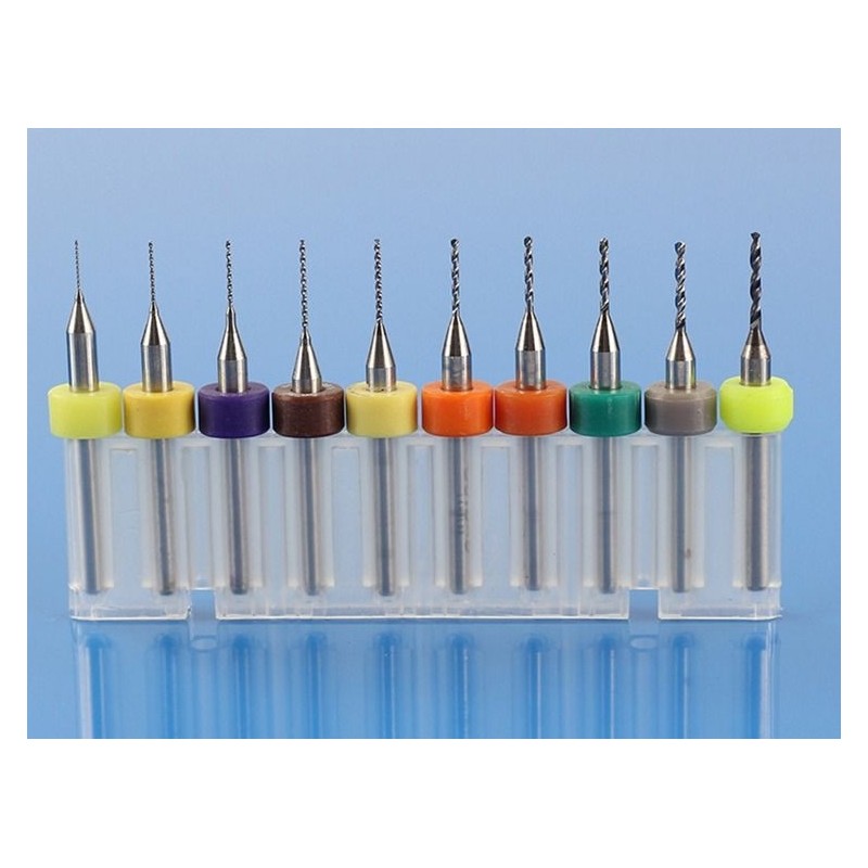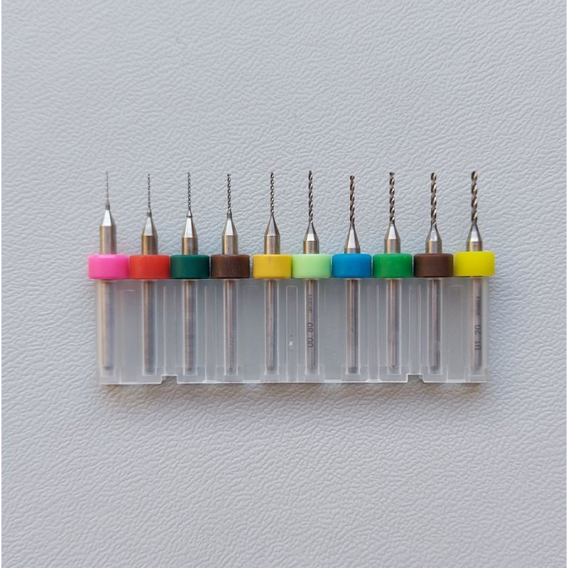 A set of precision drill bits for drilling in plastics, wood and similar materials.
