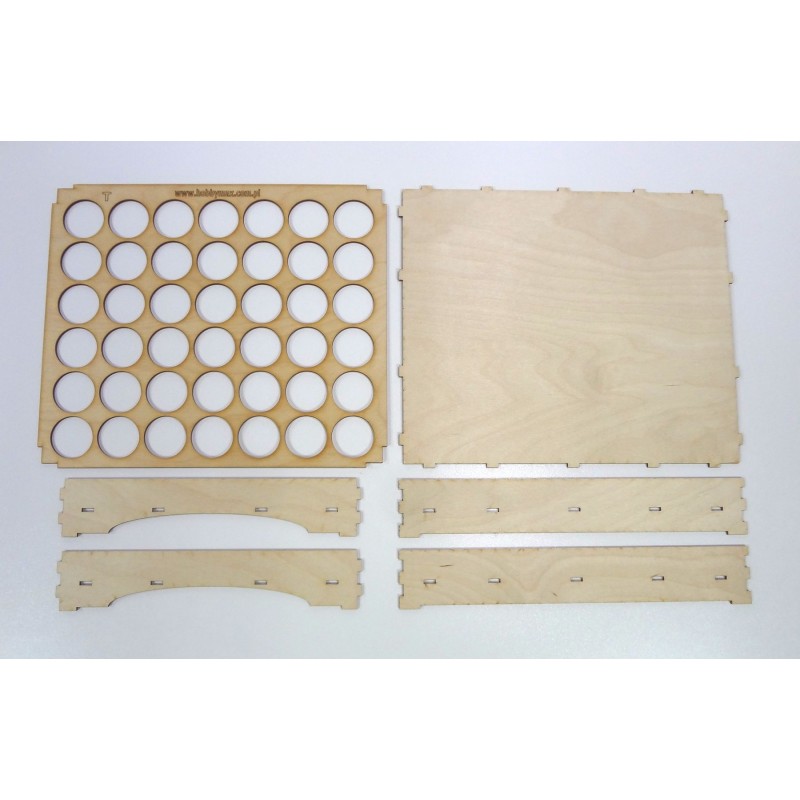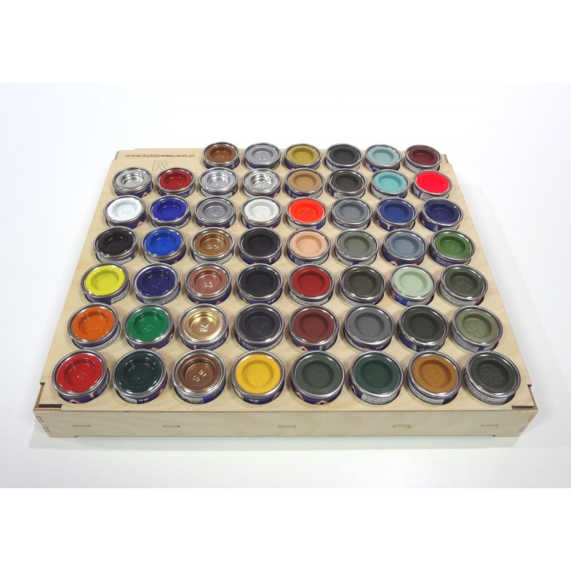 Palette for Revell, Tamiya, Pactra, Vallejo and Hataka modeling paints made of laser-cut plywood. Very useful for any modeler building plastic models.