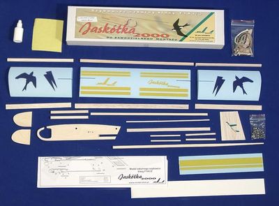 The model of the school glider class F1A 1/2 JASKÓŁKA 2000 is designed for beginner modelers, wings and ballasts made of foam (styrodur) have a ready-made print. The construction is very simple, which makes it easy to stick this model together. The set includes all the necessary elements to build the model, glue and assembly instructions. After correct gluing, the model can take part in competitions in its class.